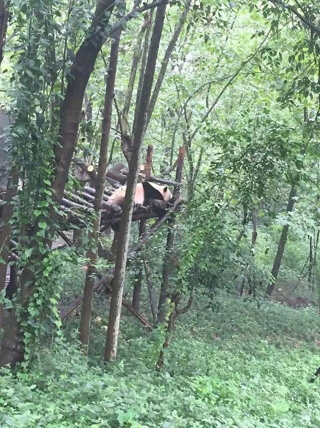大熊猫繁育研究基地是以造园手法模拟大熊猫野外生态环境,绿化覆盖率达96%,大熊猫体型肥硕似熊、丰腴富态,头圆尾短