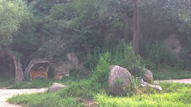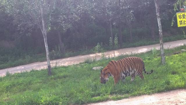 7月26日,早起去八达岭野生动物园,从延庆20分钟到园口,7:30才开始售票,来早了,因我们有邮政风景年票,所以只买了每人5元的保险和60元的自驾车票。开车进去,先是猛兽区,全是两道车,开进第一道门,门关上之后,才开第二道门。