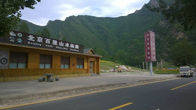 问了下,当地人说还往前走,有个珍珠泉景区玩着不错,风景好。继续走,不到四海镇,有去百里山水画廊的路标,走此路到了珍珠泉景区。