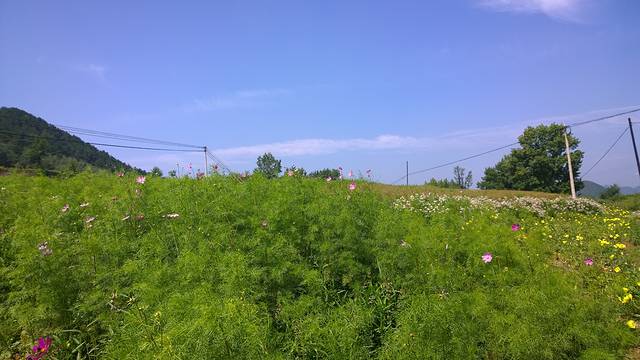 吃了饭,天气好热,没有乌龙峡谷、硅木地质公园等收费景点停留,在一片小花海处短暂停留后,直接开到了山水百里画廊的起点千家店