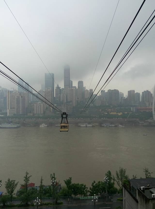 在解放碑兜了一圈。打算去朝天门,结果误打误撞去了长江索道。看过电影《疯狂的石头》应该都知道。它有“万里长江的空中走廊”之称。游客往返票价要20元。等我买完票我就后悔了。早上出门前向旅舍的姐姐要了两张重庆的交通卡,为了图坐轻轨方便。却不知道长江索道上也可以用卡刷。只用1.8元!!!欲哭无泪。不过从另一个角度看长江还是很值的(ps:我是这样安慰自己的)当然在索道上看长江风景还是很美的。