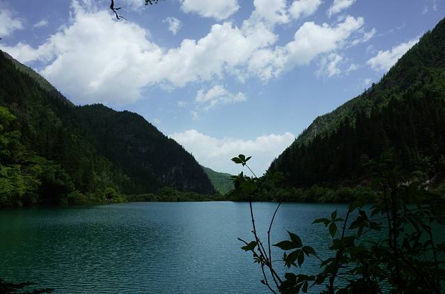 长海——九寨沟最长的一个海子,长达四公里多,呈墨蓝色,“S”形分布。岸旁林木茂密,一眼望去,水似明镜,巍巍雪峰,沐浴在蓝天白云之中,壮观奇丽