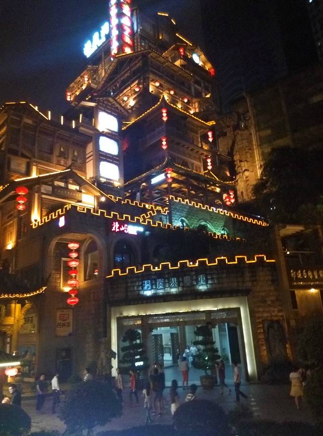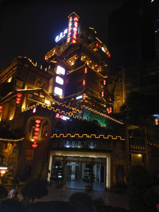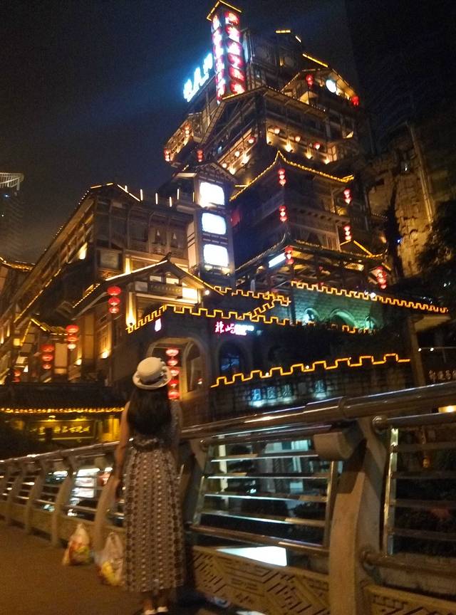 洪崖洞是我来重庆的一个非去不可的地方。看过《千与千寻》的应该见过影片中别有风格的“油屋”。而洪崖洞的夜景是如此般的神似。令我不得不神往。