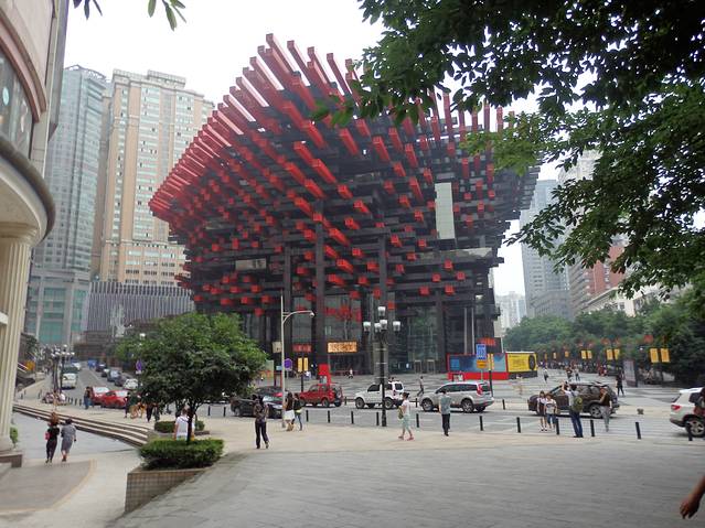 在找洪崖洞的路上看到这个建筑。因为这个建筑和中华艺术宫有着异曲同工之妙,所以拍一张留着纪念。