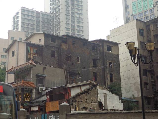 迷失在找朝天门的路上拍的。待拆的老房子与附近的高楼。这是不是传说中的“钉子户”呢???