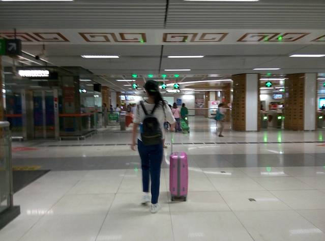 在重庆的火车站等火车。顺便提一下,重庆比较大的火车站有两个,一个是重庆火车站,另一个是重庆火车北站。我们坐的这趟是在重庆火车北站。重庆北站现在江北龙头寺这边。不过重庆北站有分南广场和北广场。坐轻轨3号线,如果在南广场坐车,就在重庆北站下车,到北广场坐车,就在龙头寺站下车,4号出口出。