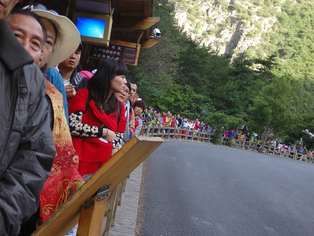 来坐索道的大部分都游客,就像我们。一共两条索道,一来一往。全程也就三分钟左右。从舱内往下看还是很刺激的。