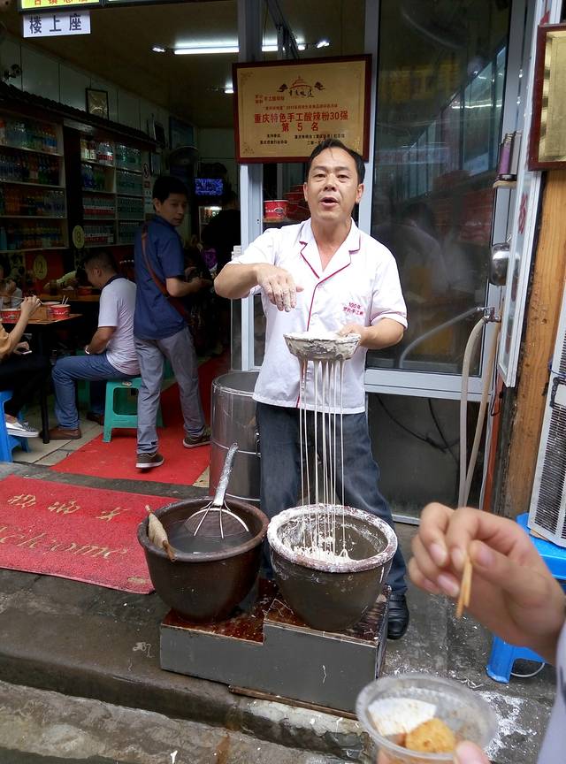 酸辣粉!!重庆的特色小吃,磁器口就有很多这样的店。各种现做。味道很赞。这酸爽火辣,超带劲!!!