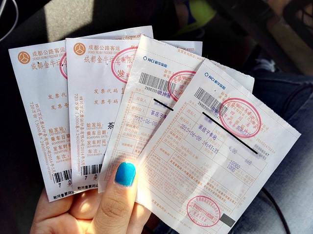 我们去九寨沟是在成都茶店子客运中心买的票。一般都是早上发车,下午到。票价去程比返程稍稍贵一点。去程是179元。我们的返程票是在去程的车上订的。大巴车上的司机会给我们一张名片。如果要回成都可以打电话给司机,他会安排人来接我们回大巴上,还是很方便的。返程票只用150元。从成都去九寨沟大概要10个小时左右。我们早上9点半左右出发,到九寨沟差不多下午6点多了。午餐不包,记得自带零食。不过,中午也会在饭馆停下来给我们时间吃午饭。你可以自行选择自备还是在饭馆吃。作为穷游学生党,果断是自带干粮。10个小时的车程会比较乏,不过窗外的风景真的是美的不像话。很多人都是一觉睡到九寨,太浪费途中的美景了。这里要讲一下上洗手间的问题,大巴车司机会在每个地段停下来休息下,上个洗手间(注意:四川这边特别钟情于一元纸币,上个洗手间是一元钱。你可准备一元的纸币可以是其他的纸币,但是他们不收一元硬币,大沈去洗手间时候拿了硬币过去,不让进,又回车上换了纸币),也可以下车走走买买特产什么的。每个洗手间的前面都是一家商店,卖各种特产。