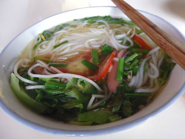 这就是在校门口的面摊吃的过桥米线。因为本人不太能吃辣,就点了碗清淡的。不过味道真的很好。他们这边加面免费哦。因为太好吃了,我很厚脸皮的再加了一份面。