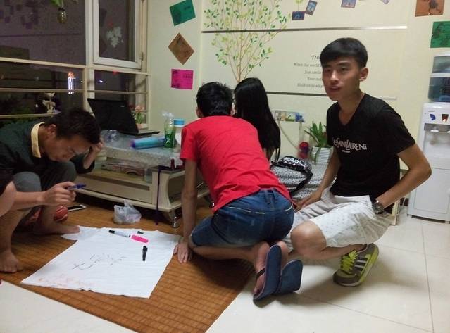 “七彩泡沫”遇上的天津来的小伙伴。我们正在给他们带的T恤上涂鸦。。。