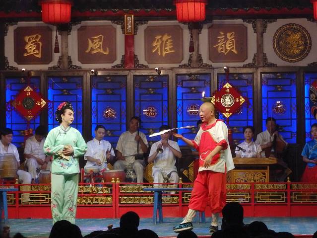 在九寨正儿八经的玩了一天。又要返程回成都了。与刚出发前的期待兴奋的心情相比更多的是满满的不舍。嘴上说说下次一定再来。却不知道到下次是哪次。到达成都是下午3点多左右。大沈和小沈要赶晚上的火车回家。我们就在成都分开了。找到在去哪儿网订的青旅,放下行李又出去嗨啦。晚上的节目主要是看川剧。尤其是川剧变脸不能错过。在茶楼里喝个小茶,看看戏。