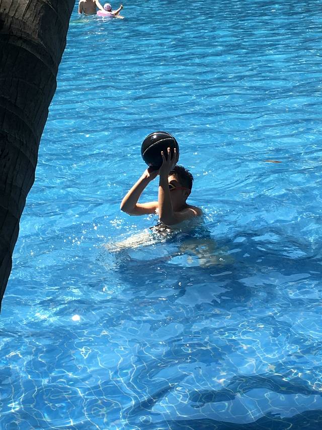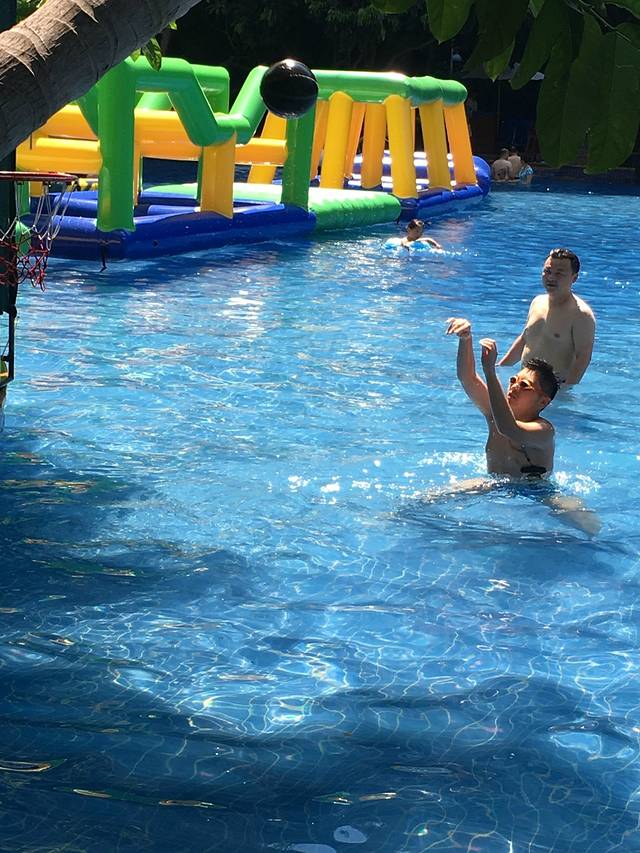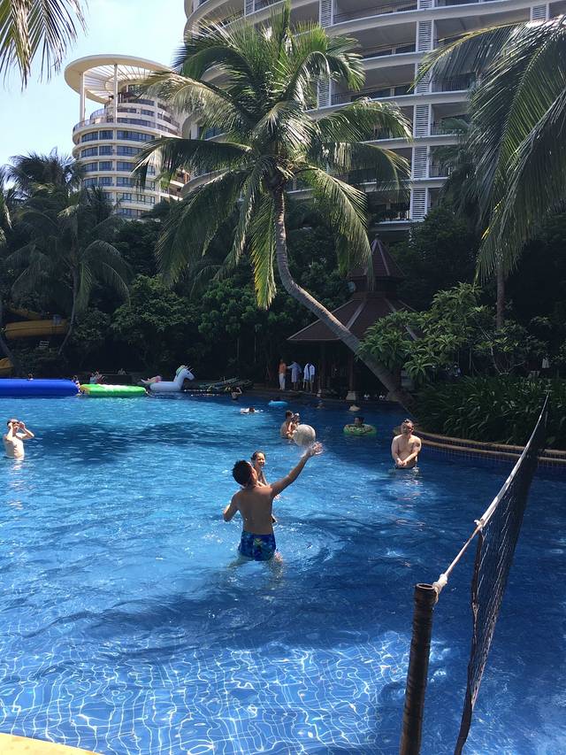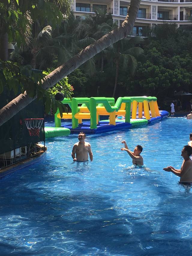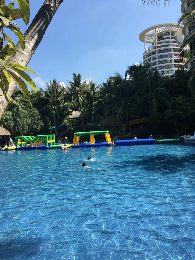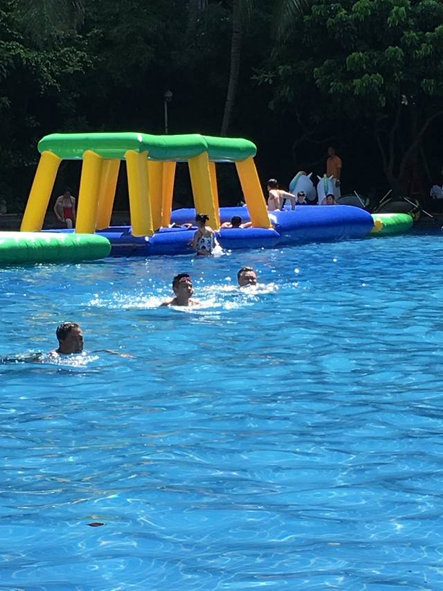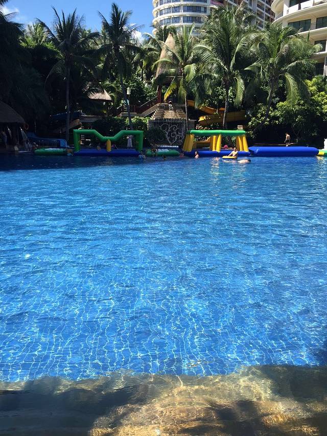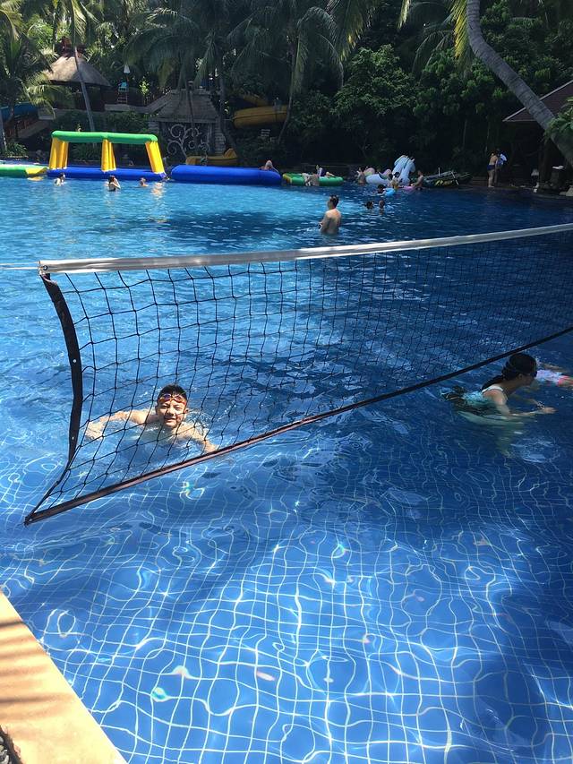 当太阳晒到屁股上,我们起床了,享用了一顿丰盛的早餐,今天的安排很简单,晚上宋城千古情,其他时间自己安排。我们无所事事的闲逛在酒店中,酒店不算太大,但五脏俱全,健身房里转了转,16周岁以下不能练器材,打CS又太热了,只能在游泳池中消磨时间了。酒店2000多平方的游泳池成了我们的主战场,想游泳就练练,虽不是浪里白条、水中蛟龙,但也是狗刨式、自由泳、仰泳、潜泳样样全能;想玩水中篮球就玩玩,擦板、远投甚至可以来个灌篮;想玩水中排球,就需团队配合,发球、垫球、拦网、扣球,我们玩得不亦乐乎;游泳池里的两架螺旋式滑滑梯更是小胖和小梦最爱,两人爬上滑下,水花四溅,重复往返,快乐欢笑。游累了、玩累了,我们就要安慰我们可爱的胃了,我们的选择是大众点评上极为推崇的四川老饭店,物美价廉而且地近,步行即可。老板热情,就在门口笑脸相迎,随手点了个团购菜再加两小炒。海鲜新鲜肉嫩味道正,川菜麻辣浓香真爽口,吃得大汗淋漓并赞不绝口,相信群众、相信吃货,大众点评说行,它就行。小寐片刻,打的前往宋城,去邂逅一场视觉盛宴,在看这场一生必看的演出之前,先来点前奏。鬼域惊魂是小梦的选择,但是到了门口竟然退缩,经过一番劝说,她小心翼翼地跟在我身后,我们六人加上两对小夫妻(都是胆小还想玩刺激的货)先后进入鬼屋。俞先生打头,我居中,不知不觉中,我的手臂上出现不少手指拉扯,有小梦、小胖,竟然还有猫二,猫大跟在猫二身后拉住她,我一个人拉了四个人前行。鬼屋利用各种玄妙的机械以及高科技手段,营造出风、雨、雷、电、瘴气、毒蛇猛兽、冤魂鬼怪、诈尸、累累白骨等惊悚场景。来到这里等于同时体验了几部恐怖片,一路上惊叫声不断。但在两个房间相连处,俞先生与一对小夫妻的相互谦让(双方无人争先,不断让对方先行,把中华民族的优良传统礼让三分体现地淋漓尽致),让恐怖的鬼屋有了几分喜剧色彩,终于闭着的眼睛睁开了几双,失去的勇气恢复了几分,一个世纪以后,我们走出了鬼屋,真是惊险刺激。接下来就是一场无法用语言和文字定义的演出,她立足于三亚长达一万年的恢弘历史长卷,以其崭新的舞台设计使整场演出突破了传统空间与感觉的界限,呈现出诗画般令人目眩神迷的美学感受。360度全景剧幕层出不穷,不断有各种演员从各个角度、各个位置出来与我们互动,有人群中、天空中、侧面墙上。。。。。。让每一寸角落都满盈着演出怒放的张力,撼动着观众的视觉与听觉神经。这里能听到落笔洞的万年回声,这里有巾帼英雄冼夫人的荡气回肠,这里有海上丝路的异域风情,这里能看到鉴真东渡时的惊涛骇浪,这里还有鹿回头的美丽传说,在椰风、海韵、沙滩的醉人风景中,寻一段浪漫邂逅。演出虚实结合,声效配合,让我们身临其境地回到三亚的过去,一梦千古情。