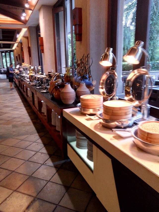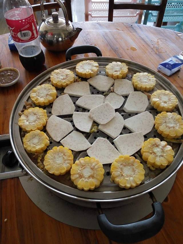 来到三亚,不去“全球最大单体免税店”逛逛,对不起猫大、猫二购物达人的名头。今天唯一的活动就是逛免税店,感受这个奢品殿堂的魔力。早上就在酒店游泳池中渡过,中午不找个地方特色的饭店慰劳一下自己的肠胃,怎么能自称吃货呢。网上搜索、众人评价,终于选定一家汉鑫蒸菜馆,号称是舌尖上的海南。大家打的前往,地点不好找,在西瓜村里面,出租车转了几圈才找到。真是真金不怕火来烧,酒香不怕巷子深,地点偏僻,人气火旺。点了传说中的桑拿菜,蒸, 中国古老的烹饪技法,能最大限度保存食物的本味和营养。蒸菜的炉灶直接搬到餐桌上,能让人第一时间享受到食物最美味。鸡是桑拿主角,鸡肉切成薄片,便于快速蒸熟,保证鲜嫩口感。服务员先把菜摆好,放在下面作铺垫,然后把鸡肉放蔬菜上面,然后用闹钟定好时间,滴滴滴,很快就好了,这时垫底的蔬菜吸收鸡汁后变得入味可口,也让鸡肉清鲜不腻。只需3分钟,此时肉中汁液最丰盈,肉质分外弹嫩。不同食材味道的交融和循环,使得到最后的鸡粥更加清香美味。时间一到开锅,顿时吃货们垂诞欲滴,第一锅蒸鸡肉。第二锅蒸排骨。第三锅蒸脆肠等。 鸡肉真的好嫩,特别好吃,排骨和脆肠也不错。然而重头戏是粥, 在刚上锅的时候下面就已经在煮鸡肉粥了,加上这三锅的蒸下去,精华啊! 下面的粥真心香, 特别好吃,加了胡椒粉,更是大爱,三下五除二,丝毫不剩。老板人好,最后还自己开车送我们回酒店,真是业届良心。