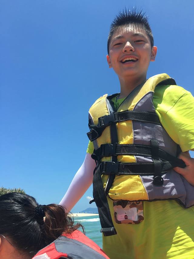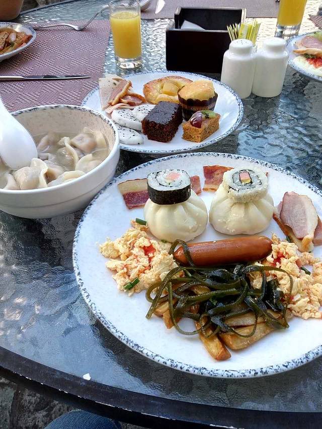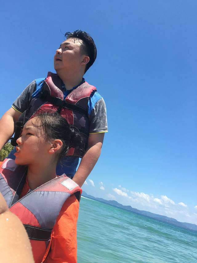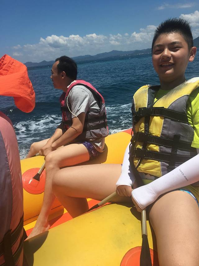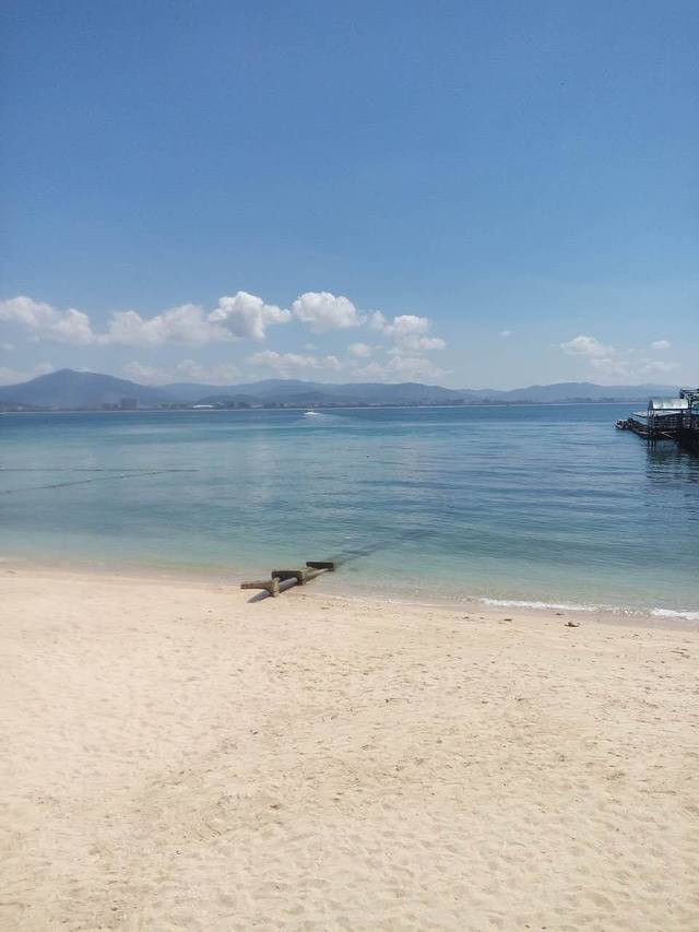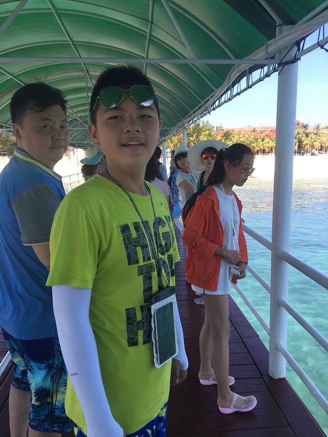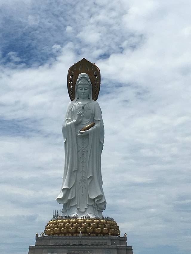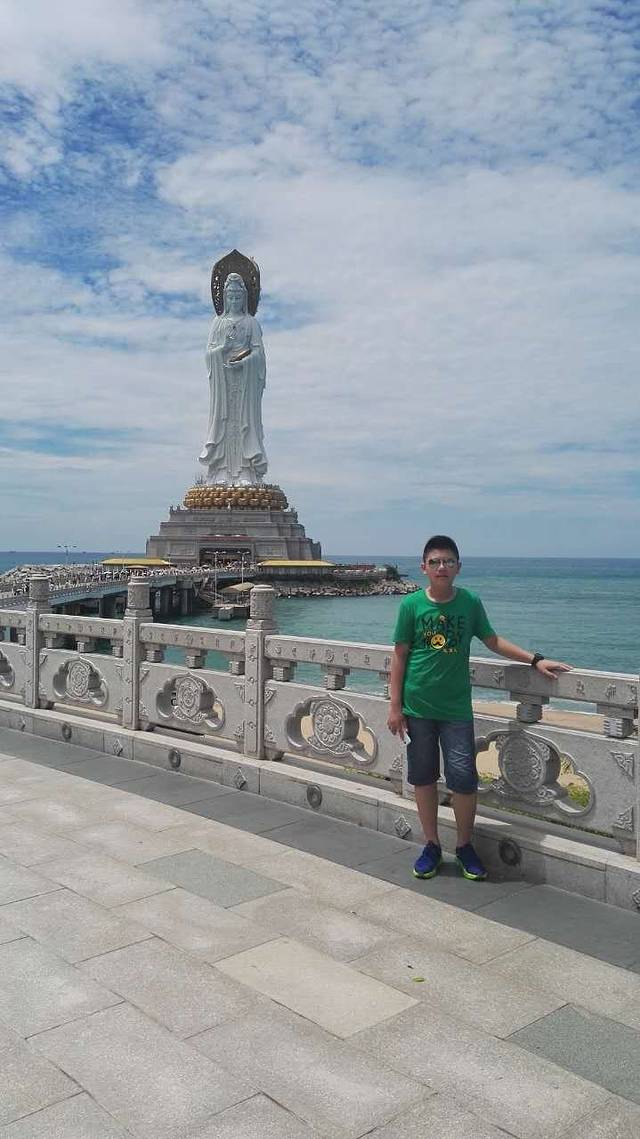 一觉睡到自然醒,度假的日子悠闲、慵懒,几个人慢悠悠地晃到早餐区,早餐虽无惊艳之处,但也中规中矩,水果甚为出彩。烤烟肉 、煎火腿 、煎早餐肠应有尽有,黑麦面包、草莓酱丹麦 、全麦吐司样样俱全,炒时蔬 、炒饭、云吞、馄饨品种多样,小米蕉 、杨桃、椰子琳琅满目,每天的海南特色小吃尤为引人:抱罗粉、陵南酸粉、清补凉、关东煮等让人垂诞欲滴,各种冰淇淋更是让小胖疯狂。几圈巡视,几番鏖战,终于肚圆满肠,心满意足。饱了就要出去活动活动,我们依约上了一日游的大巴车,今天的目标是南山和天涯。南山----“福如东海,寿比南山”,典故原产地。南山历来被称为吉祥福泽之地。据佛教经典记载,救苦救难的观音菩萨为了救度芸芸众生,发了十二大愿,其中第二愿即是“常居南海愿”。故108米观音三面菩萨相应运而生。南山无处不在显示着博大精深的佛教文化和中国传统文化,是世所罕见,震惊世界的佛教名山胜地。这里既能领略阳光、碧海、白沙、绿树等美景,更能获得佛教文化带来的心灵慰籍。拜谒南山寺、瞻仰观音相、心灵涤荡、礼佛祈福。菩提树下的一次悟禅,禅悦苑的一席素斋,观音相下的一片虔诚,听着梵音,闻着檀香,渐悟也好,顿悟也罢,心越清静,万物皆空,色即是空,空即是色,我等凡夫俗子,虽不能抛开世间万物,但也能暂时卸下不知何时戴上的尘世面具,回归自然,感受时光活动的韵律。天涯----来到天涯海角,见证海枯石烂,天涯海角已成为爱情、浪漫的象征。如果说这次旅游不过是一次重逢,那么总会有一段记忆在天涯海角等你。来到这里,仿佛真正走到了天之尽头,碧水蓝天一色,烟波浩渺,椰林婆娑,奇石林立,真可谓风景如画,美不胜收。记忆顿时涌上心头,十二年前的海誓山盟,我们又回来了,带着欣喜,寻找记忆中的曾经。这是日月石,悟空就在这儿出生;那是南天一柱,人民币二元图案;那棵歪脖椰树是我们合影地(事实证明是我们弄错了);这颗天涯石下还留着我们的笑颜。俞先生一家也终于一圆心中“走遍天涯海角”的夙愿。