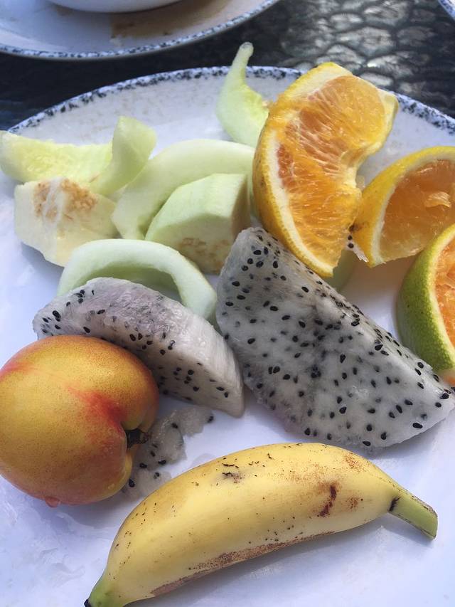 7月21号早晨,南京禄口机场启程,还恍若梦中。曾看海多处,记忆中最深最蓝的那片海,还应是海南。人未动,心已远。飞机我们选择的是首都航空,空客A321。在机上,眺望外面,天空晴朗,天晴得像一张蓝纸,几片薄薄的白云,像被阳光晒化了似的,随风缓缓浮游着。我们一行六人,小胖、小梦、猫大、猫二、俞先生和我,或远眺窗外、或稍作小憩、或谈笑风生、或品尝美食,时光过得飞快,下午两时,准时到达。两个家庭,行李若干,的士两辆,驰在美丽的三亚湾海滨公路,碧海蓝天、椰风摇曳、粼光沙滩。海韵度假酒店,东南亚风格,酒店独特海洋主题建筑造型,如两艘豪华邮轮,飞扬挺拔,门口印籍服务员,中文流利、服务周到。海景2+1房间,85平方,房间宽敞舒适、时尚豪华、阳台上超大观海浴缸更是让人惊叹。一眼望去,三亚湾美景尽收眼底。赞叹、休息、拍照、晒圈,诸事完毕后,吃货的本色复活,我们遵循一个原则,要了解一个地方就先从当地的美食开始。三亚美食的精髓,就在第一市场,这边有活蹦乱跳的海鲜、鲜翠欲滴的热带水果、琳琅满目的手工艺品、色彩鲜艳的海南岛服。第一市场不仅能让我们大饱眼福,更能满足吃货们挑剔的味蕾。我们打的前往,在谢绝了出租车司机的“好意劝说”后,到达了第一市场,这里只有你没见过的海鲜,没有你找不到的海鲜。这是龙虾、这是石斑鱼、这是和乐蟹、这是芒果螺。。。。。。不禁兴奋激动并且垂诞欲滴,但是无从下手。几人一合计,决定先找大众点评上极为推崇的几家海鲜加工店,百度地图领路,没费周折就找到了珠珠美味海鲜加工店。环境一般,但老板娘热情,能让员工陪同去购买海鲜再至店内加工。但吃货们已经无法容忍等待的时间,发现店内团购也不错,点了个498元的套餐。清蒸蒜蓉龙虾、微辣炒芒果螺、蒜蓉粉丝蒸小鲍鱼扇贝、清蒸石斑鱼、爆炒和乐蟹、清蒸基围虾、蒜蓉炒四角豆、海南椰子饭、文昌鸡、芒果汁、水果炒冰等一盘盘端上来,拍照、品尝、赞叹、然后就是大块朵颐、酣畅淋漓,人生快事莫过如此。菜足饭饱后买单,老板娘豪爽,只收500元,芒果汁、餐具都是奉献,不愧网上点评极佳海鲜加工店。饭后来点水果是必要的,第一市场芒果、菠萝、香蕉、龙眼、荔枝、山竹、木瓜、番石榴、榴莲、菠萝蜜等应有尽有,让人眼花缭乱,选了几个芒果、提了几串荔枝、捧了几个莲雾,就心满意足回到酒店,在满天星空下,坐在阳台舒适的藤椅上,吹着海风、看着海景、聊个小天、啃着水果,人生简单点就好,生活快乐点就行。