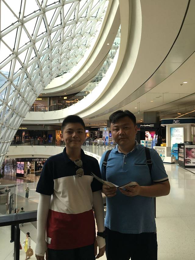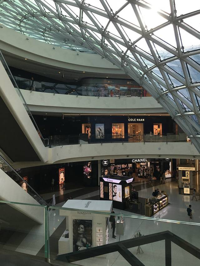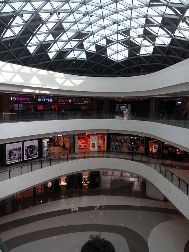 下午坐了酒店的免费接送车,到了传说中的免税店,外形大气独特,就象一朵绽开的海棠花。这里汇集了众多国际顶级奢侈品牌,集免税购物、餐饮娱乐、文化展示多种业态于一体。营业面积达70000平方米,汇聚了近300个国际知名品牌,涵盖了服装、服饰、箱包、香水、化妆品、手表、太阳镜、小皮件等。到了这里,猫大、猫二眼睛都发绿了,直奔自己钟意的化妆品牌。猫大去了韩国的雪花秀,猫二则去了法国的兰蔻。而我们四个苦逼的人,只能四处逛逛,看看手表店,贵得让人怀疑人生,便宜地又看不上。周围名品荟萃,雍容典雅,富丽堂皇,到处是高端大气上档次。对于象我们这样低调简约有内涵的人来说,就是少许忐忑、少许羡慕、带着淡定、带着悠闲,以看秀的心情闲逛着,指点江山,挥斥方遒,反正就是不买东西。直到我们走到了美食那层楼,小胖发现了必胜客,气氛点燃,兴致盎然,终于有了感兴趣的东西,你们逛你们的奢华,我们尝我们的美味。你们追求的是一种经典的生活品质,一种执着的生活态度;我们则强调一种淡然,一种休闲,以及对美味的尊重。