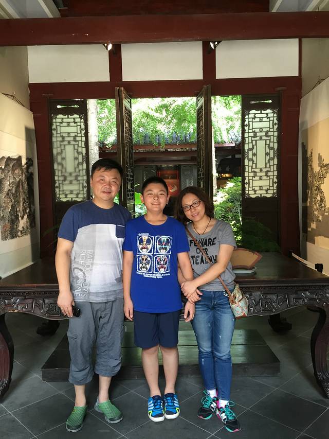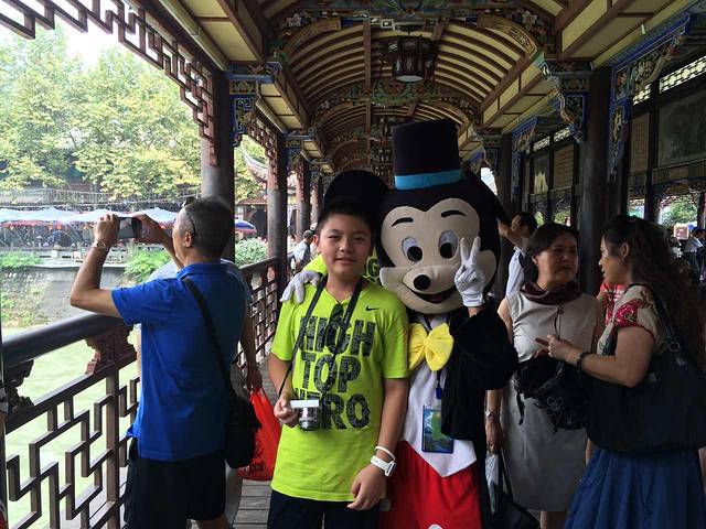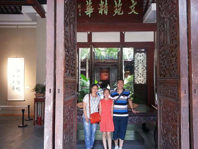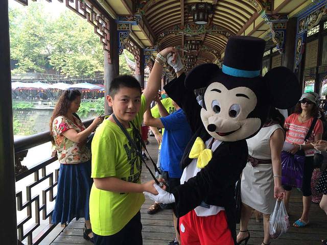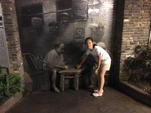小憩了二小时,我们开始了宽窄巷子游览,宽巷子、窄巷子、井巷子三条古街,成都的地标景点,在这儿你能深深地体会到成都的悠闲和慢。成都喧嚣繁华的闹市区中,宽巷子,窄巷子,井巷子是以两排四合院房子为界限,三条并列的巷子。它们是老成都旧址,也是清代满族人在成都聚居的众多街巷之一。这里幽静古朴,古居众多。虽然巷子不是很长,可让人去过一次就很难将它的印记从心底抹掉。它们躺在这里,静静地诉说着几百年来成都人的休闲雅致的生活韵味。在宽窄巷子幽深的长巷中,我们感受着古街心跳和呼吸,欣赏如诗如画的古朴巷间美景。虽然游客如织,各种叫卖声不绝,但心静了,就能欣赏到成都的人文特色和文化展示,古今文化在这儿融合得这么淋漓尽致。好不容易让自己沉浸入艺术家的心境,但小帅胖的欢快的叫声把我从幻想中叫醒,“好多好吃的”,顿时吃货的本性复活。三大炮、麻辣烫、酸辣粉、老妈兔头、火锅粉、玉林串串、麻婆豆腐、夫妻肺片、绝味鸭脖、龙抄手、钟水饺、麻辣兔丁,廖记棒棒鸡等,琳琅满目的小吃排列在古巷的各处摊位,让人食欲得到极大的升华。但尝试了几种造型引人的小吃,不禁让人微微感到失望,味道一般,商业的味道已经影响了传统美食。但这影响不了吃货们的心情,特别是小帅胖,没有什么能阻拦他寻觅小吃的心情,在品尝了三大炮、老妈兔头、糖油果子、红糖锅魁、三合泥等成都名小吃后,连老成持重的俞先生也忍不住了,对炒雪糕情有独钟,捧着冷饮留连在宽窄巷子的悠闲中,小小地体验了一把儿时的放纵。晚餐我们是订在成都印象,一座有名的川菜馆。门面古朴典雅,装修得颇具高大上之感,可以选择特色川菜,也可以品尝一下特色小吃。整个餐馆分为三层,第一层搭了一个小戏台,有川剧表演,二、三层主要是进餐的地方,整个地方颇具古风。我们点了水煮鱼、麻婆豆腐、椒麻鸡、夫妻肺片、老妈兔丁、红糖糍粑、三合泥、担担面、赖汤圆、龙抄手,但说实话,盛名之下其实难副,可能是旅游区的缘故,味道实在不敢恭维,后被俞先生评为入川之后最差晚餐。小帅胖和小萌梦的心思全被楼下的表演吸引了,抢了栏杆旁的座位就津津有味看了起来,难道这两个小屁孩还有艺术家的潜质。
