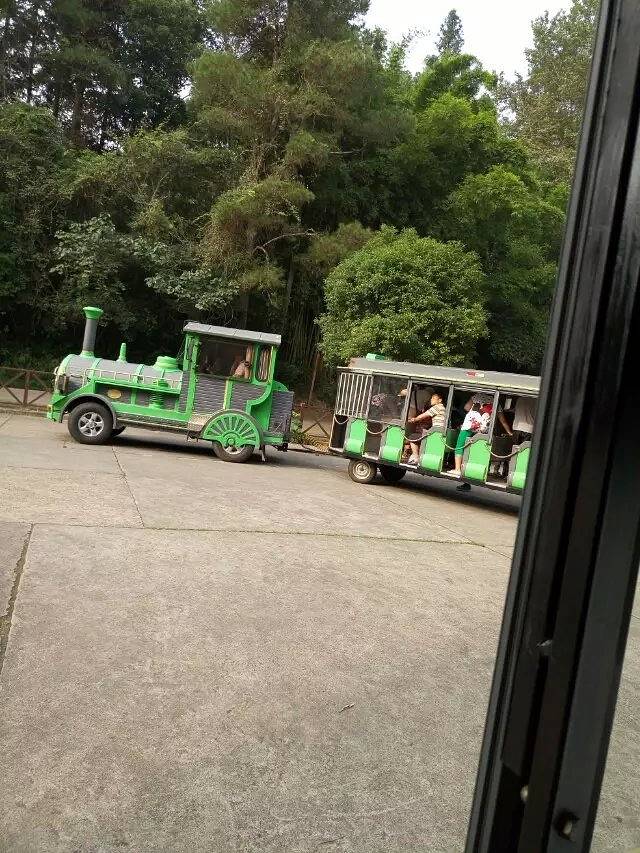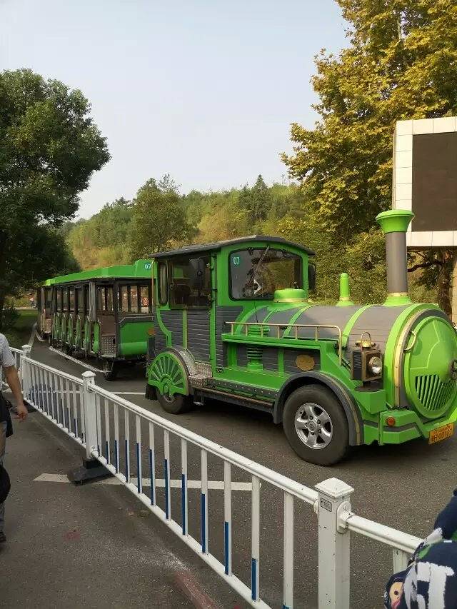 【观光车】进了大门,跟着人流走了好久的木栈道才到了坐观光车的站点,有分两种观光车,一种是小火车型的,这是通往天游峰的,还有一种是像乡村巴士那种,这个有通往虎啸岩等,旁边会有穿衬衫的工作人员可以向她询问