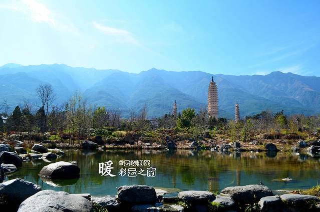 冬天本来天亮就晚,这边又比北京时间晚些。睡到自然醒,10点起床,懒洋洋的吃个早点,在小伙伴的带领下,步行前往崇圣寺三塔。