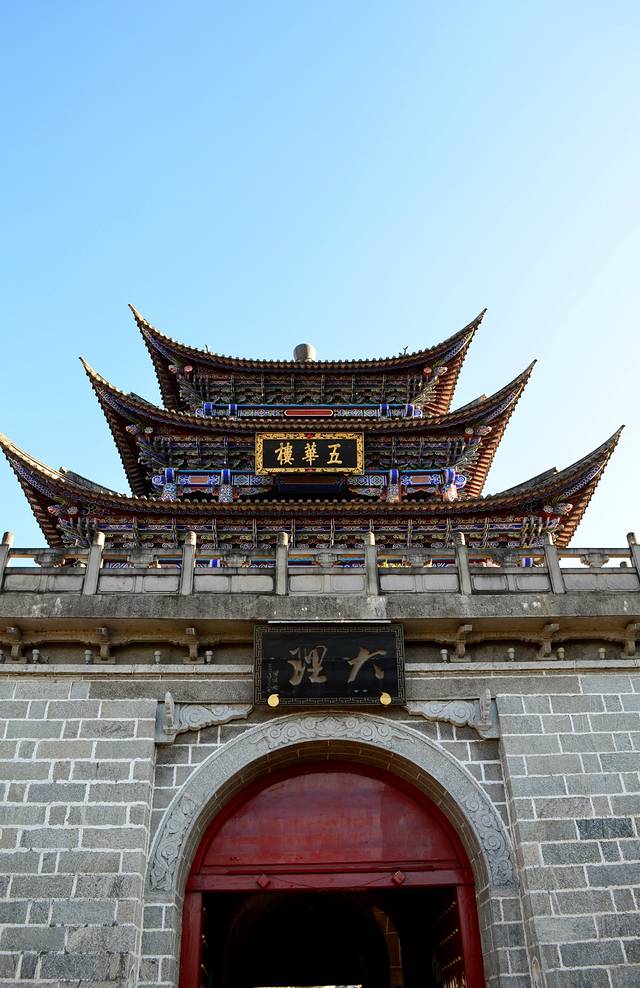 大理古城位于洱海西侧,大理新城区北侧,四个方向各有一个门,大体上是个2*2的方块。洋人街、人民路等知名街道穿梭于古城中间。