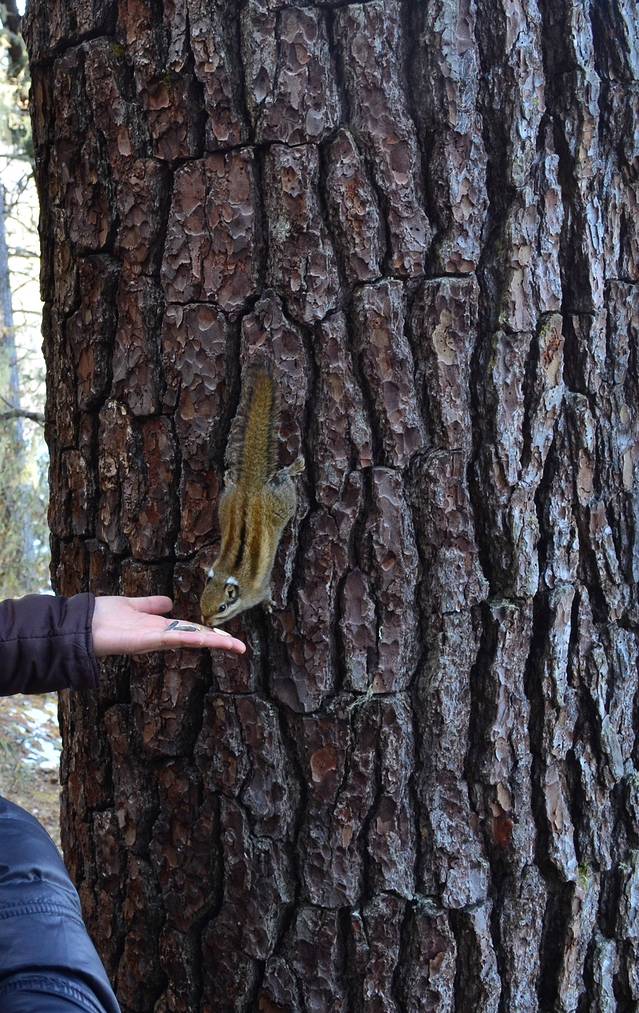 穿梭行走于树林间,一只只身手矫健行动迅速的小松鼠吸引了我们的注意。它们不太怕人,又不敢太亲近,飞快的拿走你手里的食物就跑掉,过一会再回来,一趟趟搬运好吃的。久居大城市很少能见到松鼠的我们,拍照喂食玩的不亦乐乎。