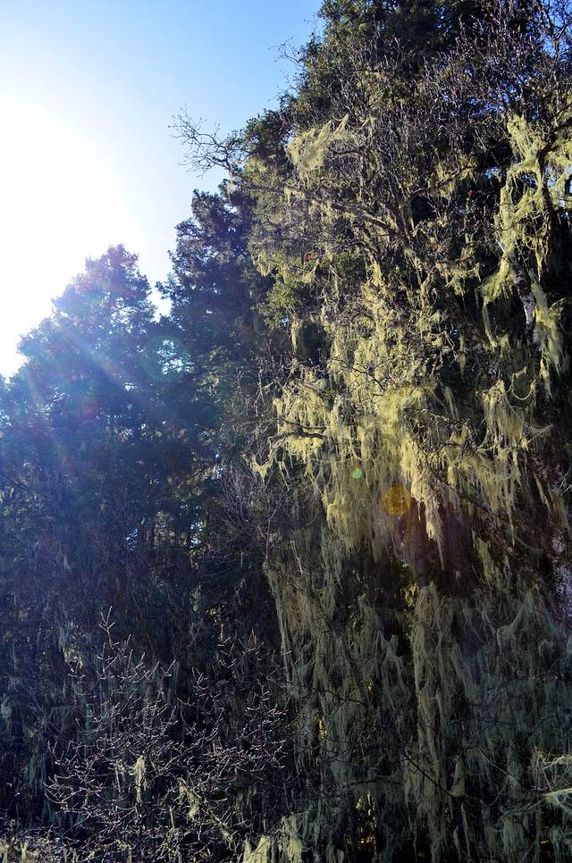 可以看到树上经常长着茸状的东西,当地俗称叫树胡子,寄生生物,可以用来做刷碗的百洁布。