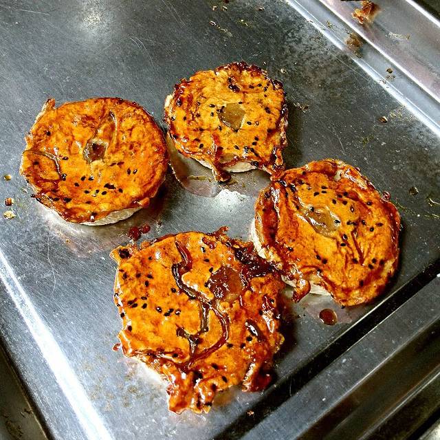 西栅小吃基本上以糕点为主~小吃不多,每个都有人在排队~先说入口处的祖传烧饼,薄薄脆脆的,里面是梅干菜的馅儿,刚烤出来的很香脆~