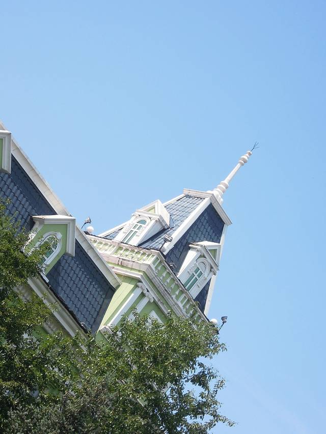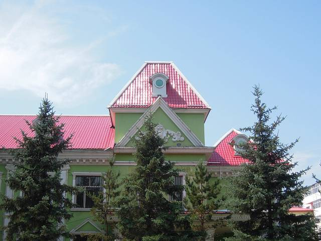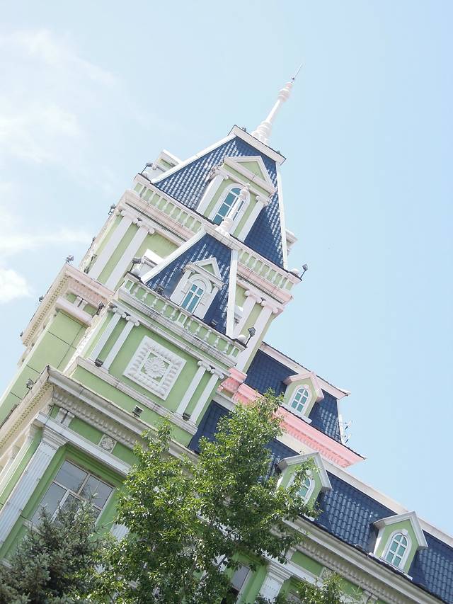 漠河县的建筑,我一直在找屋顶。很好看。像童话里的建筑。