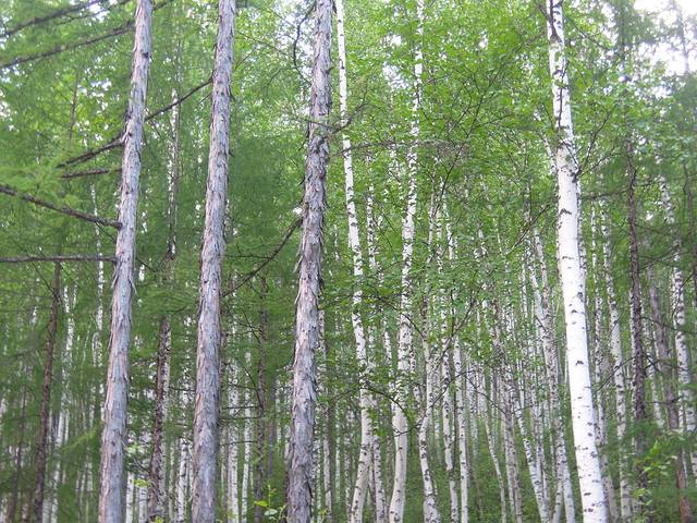 一路上也有孤独的白桦树。连鸟叫声都很少惊扰。