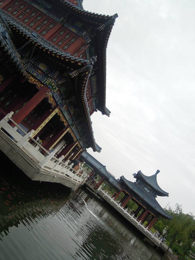 雁滩公园。满池的游鱼,我们喂她,师傅说不能喂,会撑死的。