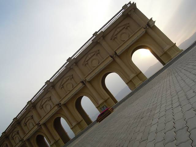 关城内景。其实城内是有杂技,武术表演的,我站在城墙楼台上,边看边躲太阳。