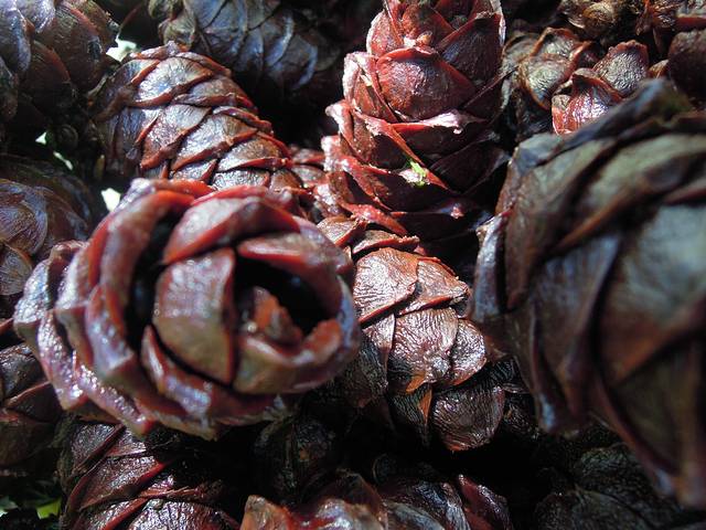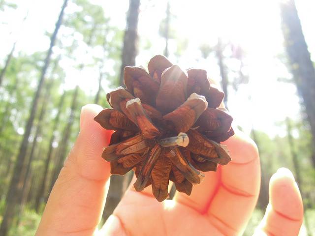 煮熟的松球,里面有松子,大姐剥了一个给我吃,太小了,我吃不到松仁。