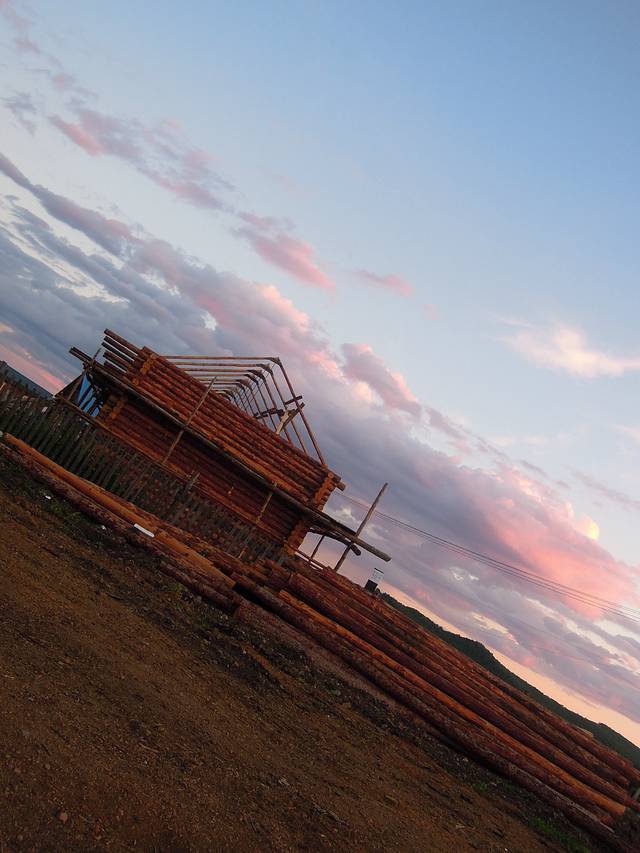 恩和小镇里面的新建楼房,听说这些木材很贵。又将是一个漂亮的木屋。