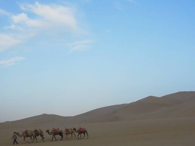 考虑到费用问题,鸣沙山月牙泉我们没有去,在外围逛了一圈,整体感觉除了沙漠和晒,就是骆驼。其实后续是有点后悔的,但是一路的旅途,留下了遗憾才会有再去的理由。另外沙洲夜市那边晚上有条党河风景线还不错的,记得那天和WN在那条河边的小凳子上,坐聊了好几个小时,她聊她的大学,聊她的毕业,她的专业,我聊我曾经的那些工作经历。很多人很多事,遇上了就是遇上了,缘分就是缘分。