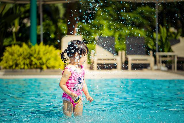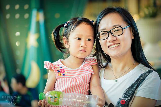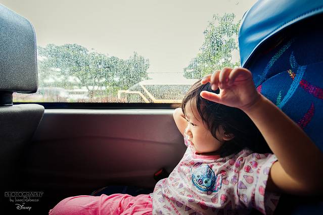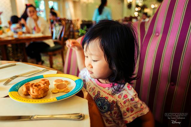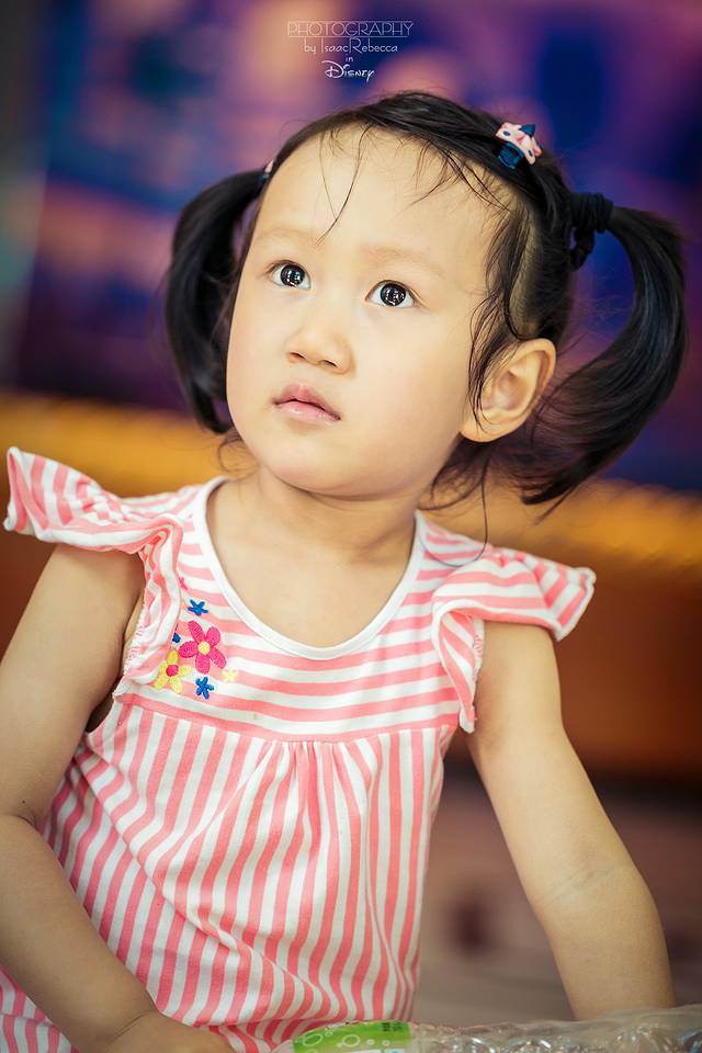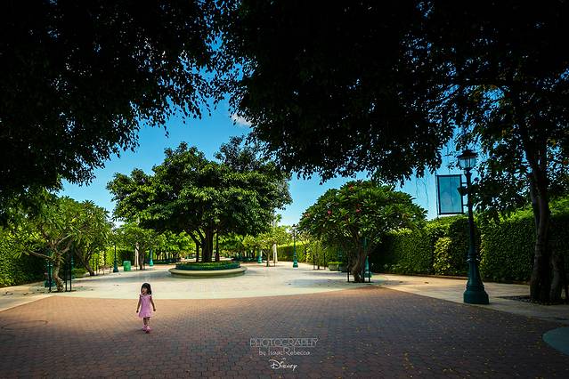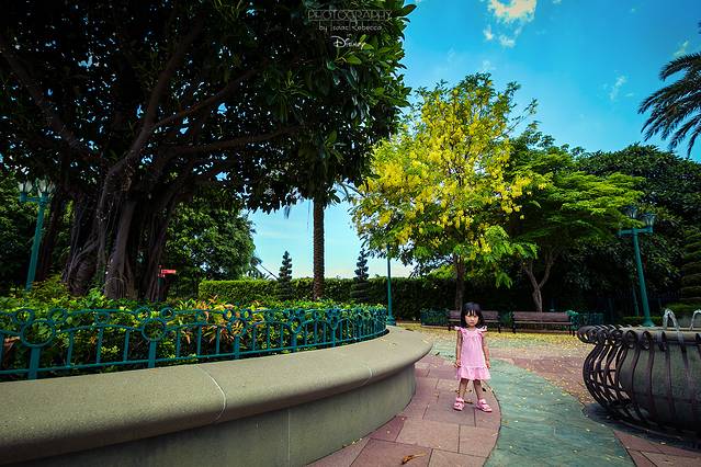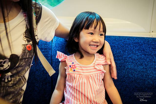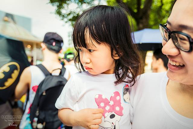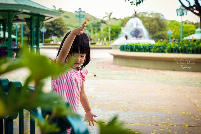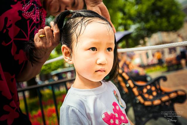 户外的天气对于好动的小朋友来说,更别说是在迪士尼这样令人兴奋的主题公园了,不一会儿就满头大汗了,扎个小辫子,任由她继续开心吧!