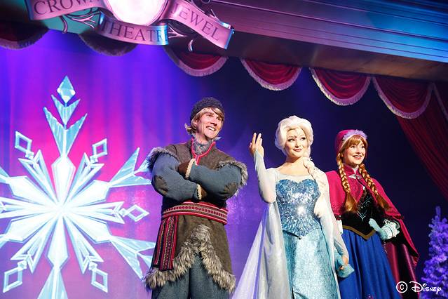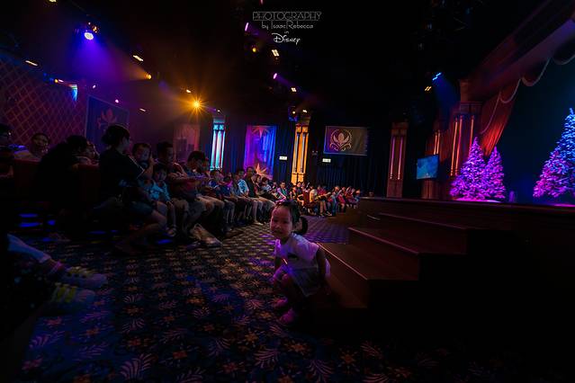 我们首先想看的,当然是冰雪小镇的演出啦,查看了下时间表,周一至周五10:30,11:30,12:30,13:30,14:30,16:00,17:00,18:00,19:00,20:00,周六周日少了最后一场。考虑到冰雪小镇走过去要10分钟左右,如果排队人数太多可能会赶不上第一场,所以决定进门后先和队伍并不算太长的米奇米妮合影,看11:30的那场吧!