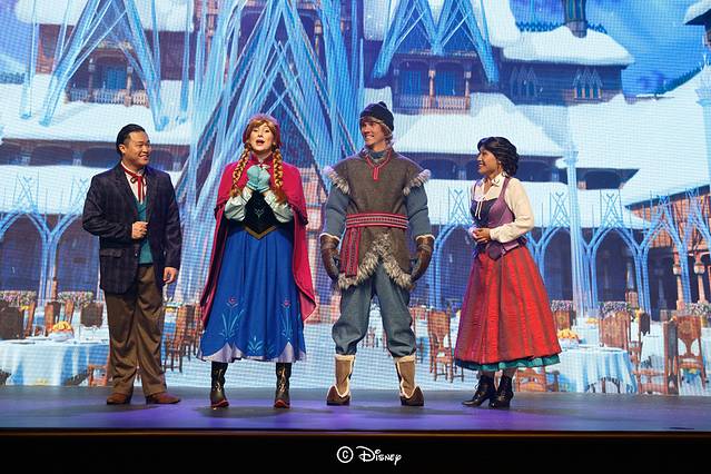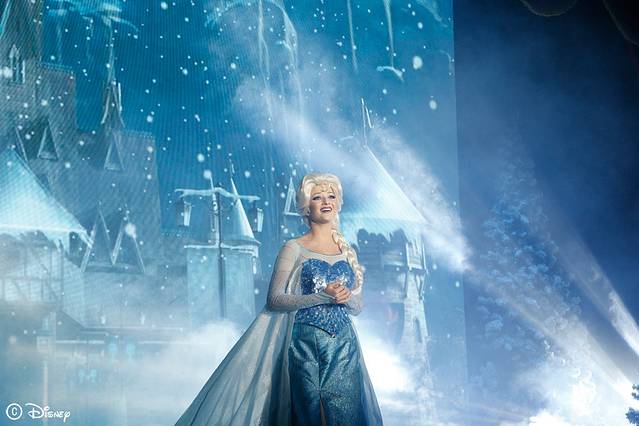 表演开始啦,看到Elsa、Anna,好美丽!一首首耳熟能详的歌曲把我们带回到了《冰雪奇缘》的动人情节中,小太阳都已经会哼哼 来梯够 (let it go)了