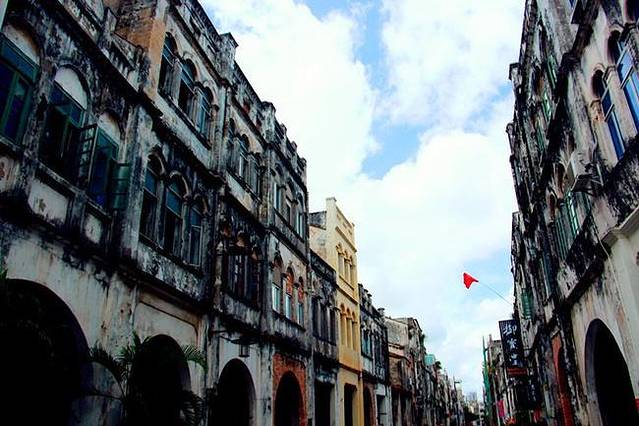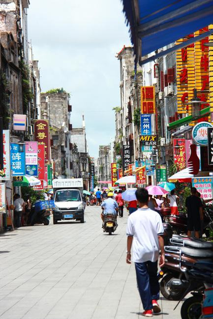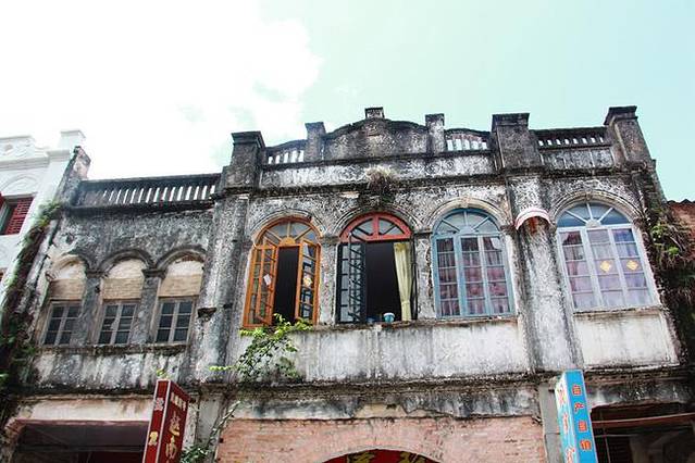 这些建筑临街的骑楼部分,既是道路向两侧的扩展又是铺面向外部的延伸,人们行走在骑楼下,既可遮风挡雨又可躲避烈日;骑楼的方形柱子粗重厚大,颇有古罗马建筑的风格。