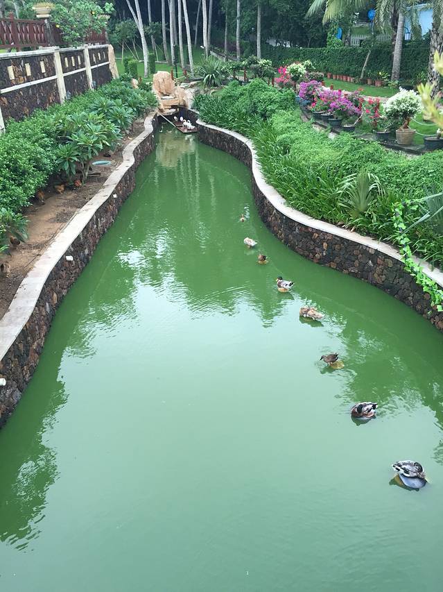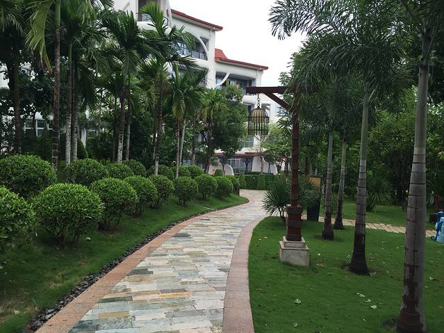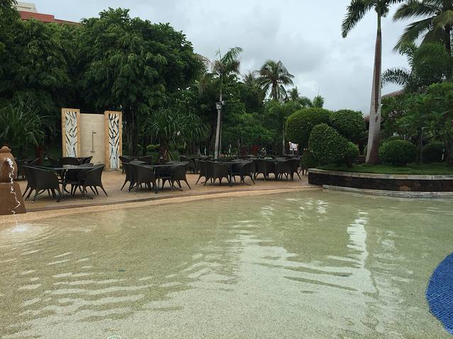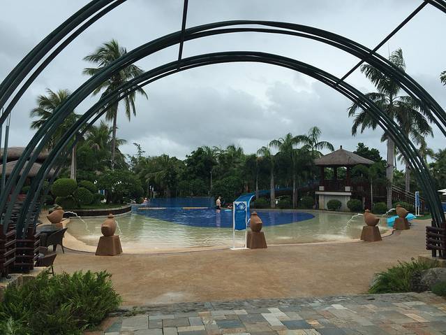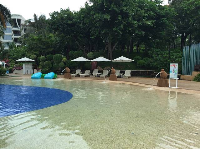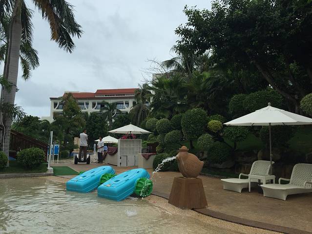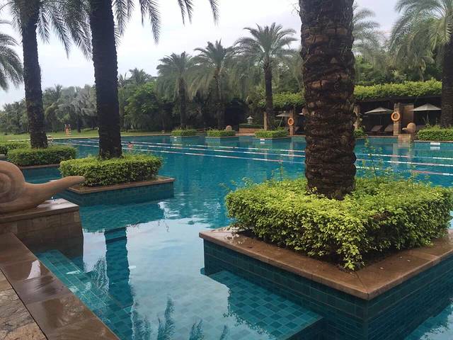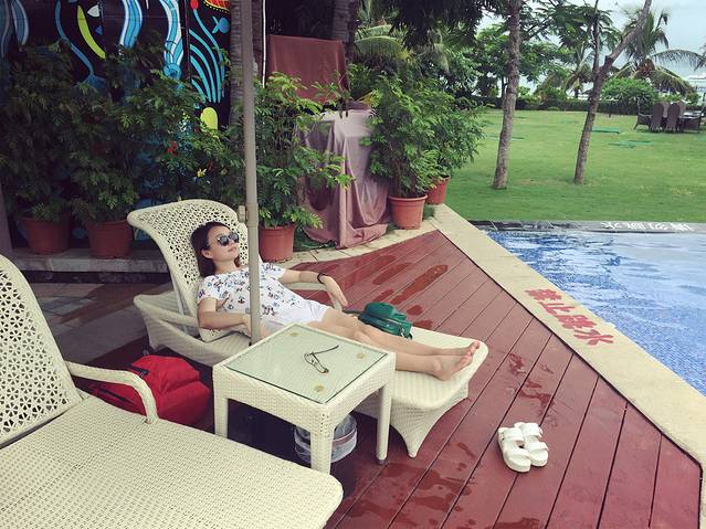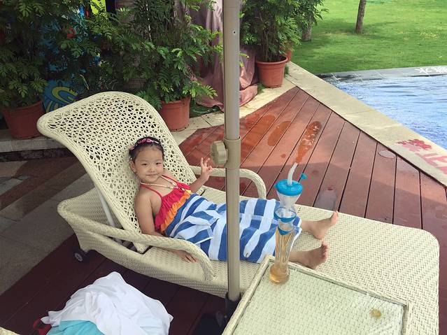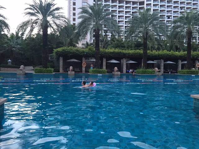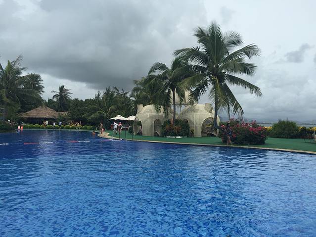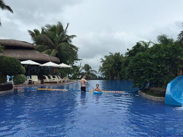 听说三亚即使是阴天的紫外线也是很厉害的,我们对这句话没有当真,玩完大海又换了泳衣接着去公共泳池游泳。换好衣服一出门,就遇见一服务生,问我们要去哪里,得知我们去泳池,直接一路领着我们过去,我心里想:其实我认得路…哈哈