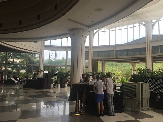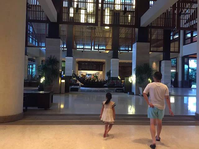 上岛后,这一大一小都吐了两口~我拖着行李顺带照看这两只…很快看见酒店的电瓶车接待处,会有服务生帮我们拿行李,几分钟后就到了传说中的超豪华珊瑚酒店了。酒店很漂亮,大厅服务生也热情周到。办理入住的时候前面也就等了两个人,虽然才中午12点,但是告知我们现在就可以入住了,很显然,淡季就是一切会变得顺利很多。