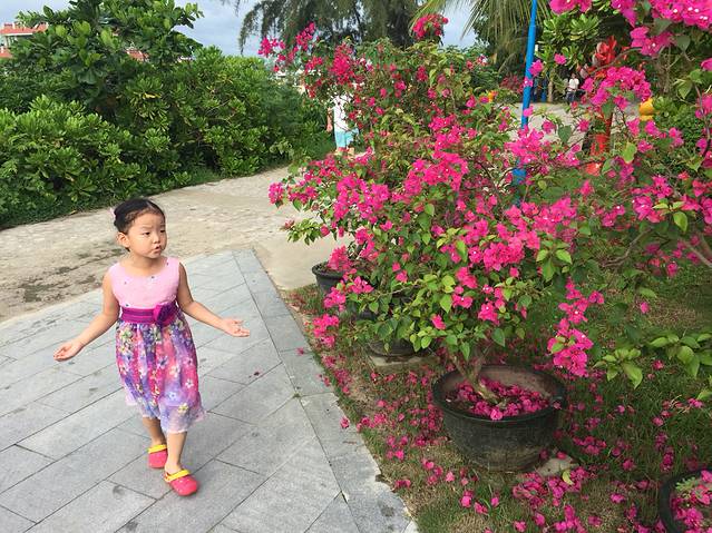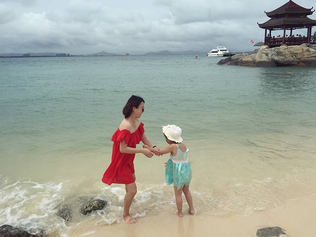她沿着沙滩的边缘走 一步一个脚印 浅浅地陷落她沿着沙滩走 不想回头 她脱了鞋子 喜欢那种 冰冷的感受 生命中没有多少时候 可以这样沿着什么没有目的地走 也没有什么人规定过 只有十七岁可以光着脚 十七岁才能为这样 简单地事实微笑...... 这是一首我在中学时期很喜欢的孟庭苇的歌,里面包含了我所有对于大海的幻想。就应该是这样:光着脚沿着沙滩慢慢的走着,海风吹起长长的头发和白色连衣长裙,身后一串脚印...... 为什么说是梦回三亚呢?其实是第一次来,没有见过大海的我,或许在梦中见过多次...所以真的来了之后,并不觉得陌生,梦中的海就应该是这样的。活到了30多岁这个年纪,竟然没有见过大海,梦中的碧海蓝天没有真正切切的去触及,是何等的遗憾,人生感觉都不完整了。曾经有考虑过青岛甚至离家最近的连云港去看看海,被添爸否决了,理由是:你那么爱海,想了那么久,当然要看最好的,不然我怕你会失望......我觉得他说的有道理,再加上今年四月的时候添宝幼儿园的好闺蜜一家去了三亚,我和添宝都被三亚的美景所吸引,所以我们一致决定去三亚!终于在八月份的时候把年休假定下来了,九月真的可以去了!到如今回来好多天了,想想还是如同做梦一般...... tips: 1.本文没有比基尼…不是不想穿 是身材不好 实在没有自信穿...... 2.本文属于亲子游,由于带着孩子很多方面受到限制,以舒适为主,不算真正的穷游。比如交通基本都是打车,住的饭店基本都是五星,算是度假之旅。 3.我的碎碎念,也许不能很全面的给大家做到指引,但是我会把我在这几天的感受尽量完整的写下来,给大家一个参考。 4.照片很多是手机拍的,有些是单反傻瓜模式拍的,而且没有处理,直接就用了,技术有限,敬请见谅。