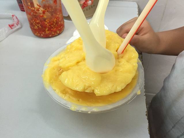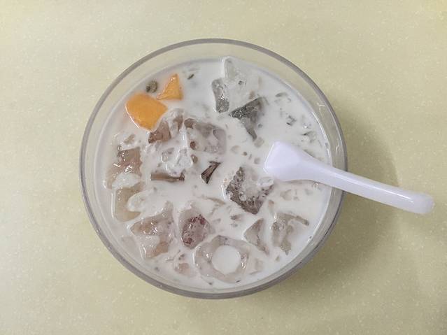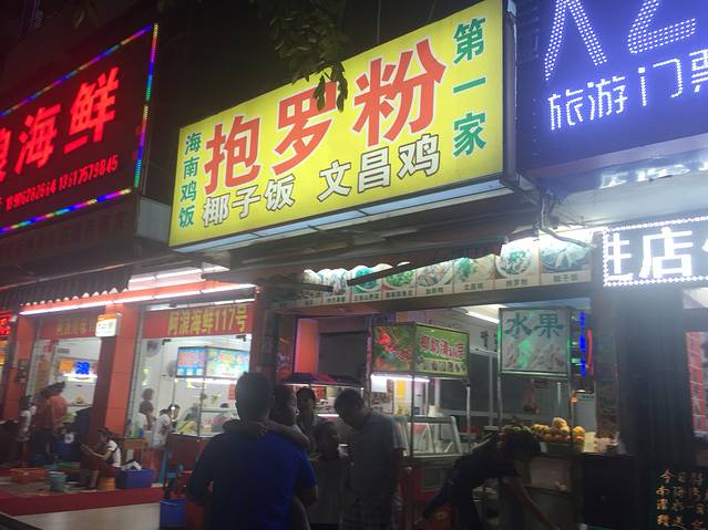 大众点评里面评价很高的小正抱罗粉名不虚传,果然好吃,我简直爱死了,清淡营养美味。海鲜的15,肉的10元。他家还有虾饼,我连吃了三张停不下来的节奏,4元。也有清补凉,8元一碗,添添很爱清补凉,每天都要喝…三个人吃的肚子鼓鼓的准备逛逛消食,又看见一家号称第一抱罗粉的,却看上了她家的水果炒冰,点了火龙果和芒果的混合,15元。又是一份超级好吃的东西,添宝又找到一样最爱,哈哈。