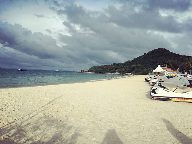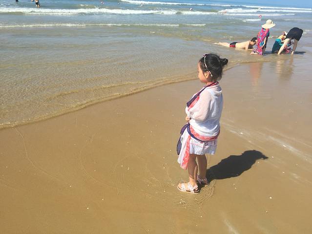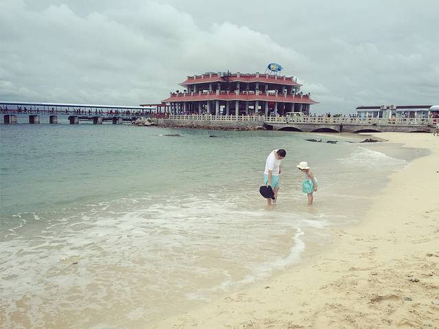 重要的时刻终于来了,我们要去看大海了!蜈支洲岛号称中国的马尔代夫,所以美丽是肯定的,阴天都这么美,没有让我失望。海水是碧色,沙子很细,颜色很淡,在国内已经算得上白沙了。换好行头的我们,就这样走到了她面前…是第一次来吗?我觉得不是…没有陌生感…浪花拍打着我的脚,耳朵里听见的是海浪声还有添宝一阵阵兴奋的尖叫声…有一种温暖的情绪在心底蔓延,这已经足够…不需要更多,我已完整…