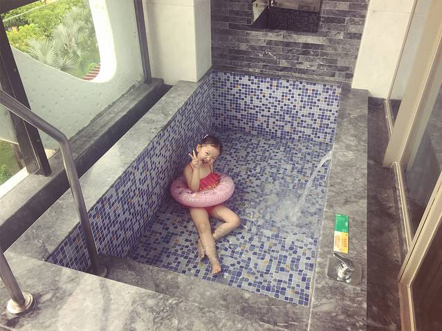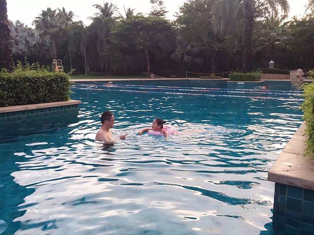 淡季真是好,你们看泳池被我们包场了…添宝心心念念的游泳如今在这里实现了。