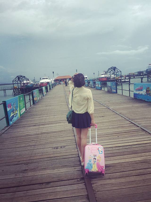 一位正在翘首等船来的小美女