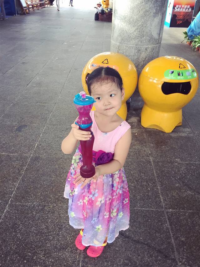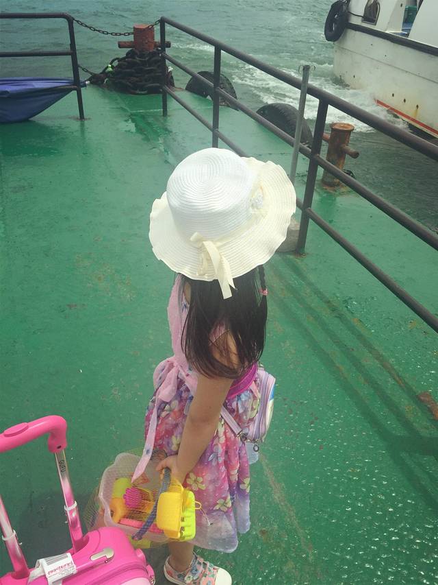 码头的风吹起添宝的裙,头也不回直往前冲的小朋友