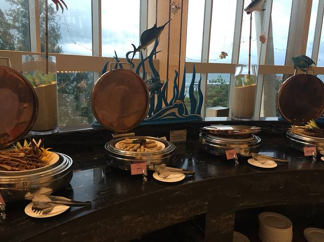 午饭基本等于没吃,就吃了点点心,现在兴奋劲过去,都开始饿了。换好衣服酒店内部逛逛看看有什么好吃的,天很快就要黑了,岛上开始慢慢宁静平和,喜欢这种感觉,庆幸自己的决定是住在岛上,非常值得。