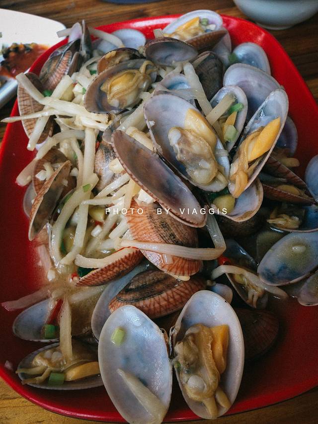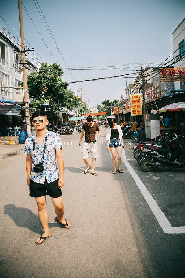 离银滩并不远,典型的旗楼风格:楼下是铺面,楼上就是老板的家。满街各式各样的小吃琳琅满目,这里的吃食较其他地方便宜很多,味道也足。