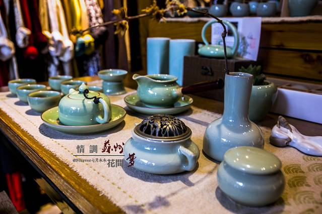 这是花间堂的礼品部,杯盘瓶盏、衣着配饰、书籍、文具、明信片……尤其喜爱这里的粗麻布衣服,棉麻质地,清晰的纹路,触碰肌肤,厚实的感觉。在此购买,简单方便,所得即所见。